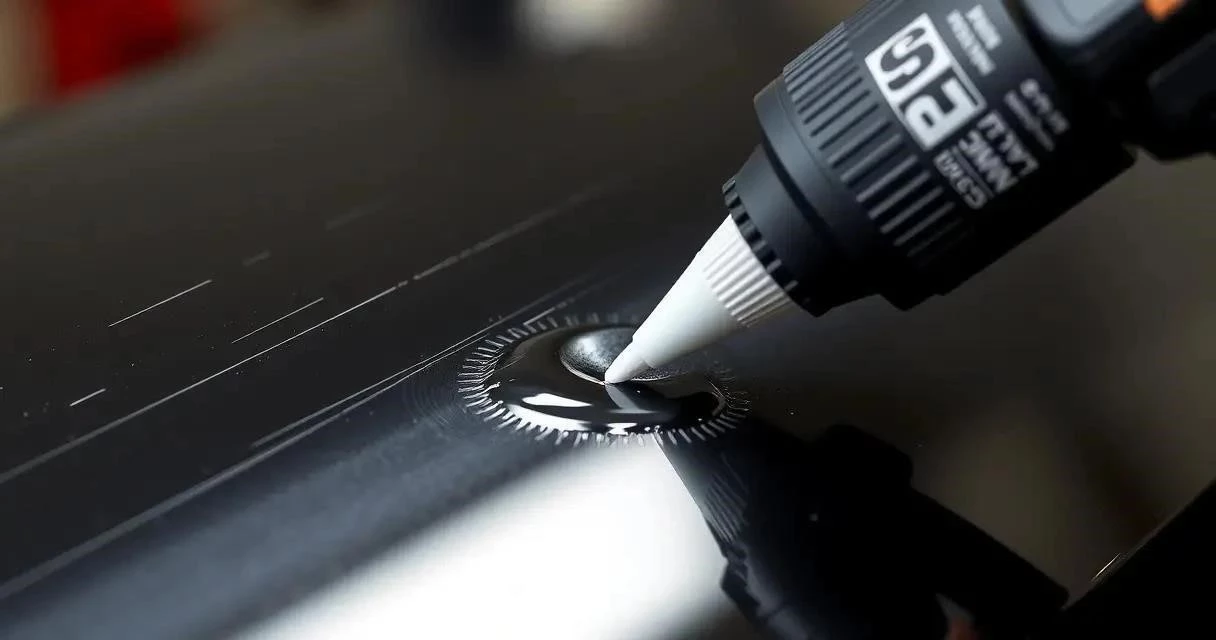 - Подготовка поверхности: Очистите поверхность кузова от остатков старого клея с помощью скребка. Обезжирьте поверхность обезжиривателем. Нанесите грунтовку на подготовленную поверхность.