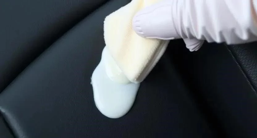 - Нанесите раствор на микрофибровую салфетку и аккуратно протрите поверхность кожи. Не лейте раствор прямо на салон!