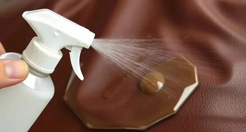 Ответ: Попробуйте использовать специальный очиститель для кожи или мягкое мыло. Не трите пятно слишком сильно, чтобы не размазать его.