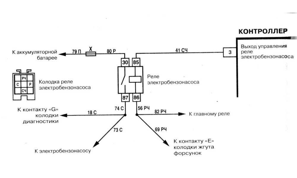 - При наличии напряжения 12В, необходимо замкнуть провод розового цвета на серый провод, что позволит соединить контакты 30 и 87 реле. Начало функционирование бензонасоса будет свидетельствовать о выходе из строя реле. Проверить это можно путем временного монтажа рабочего реле, снятого с другого транспортного средства.