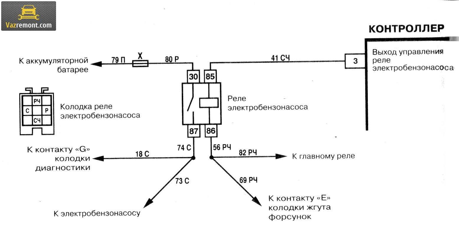 Если на ВАЗ 2110 топливный насос и вовсе не включается, тут сперва стоит обратить внимание на электрическую схему запитки, по которой работает бензонасос ВАЗ 2110, а именно:
