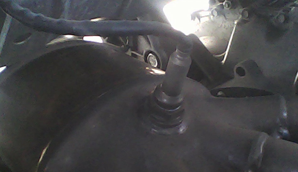 - Из-под днища машины в области расположения правого привода отвинчиваем второй (диагностический) датчик кислорода ключом на «17». Предварительно устанавливаем машину на смотровую яму, вывешиваем гидравлическим подъемным механизмом. Визуально ДК на Лада Гранта расположен после нейтрализатора газов.