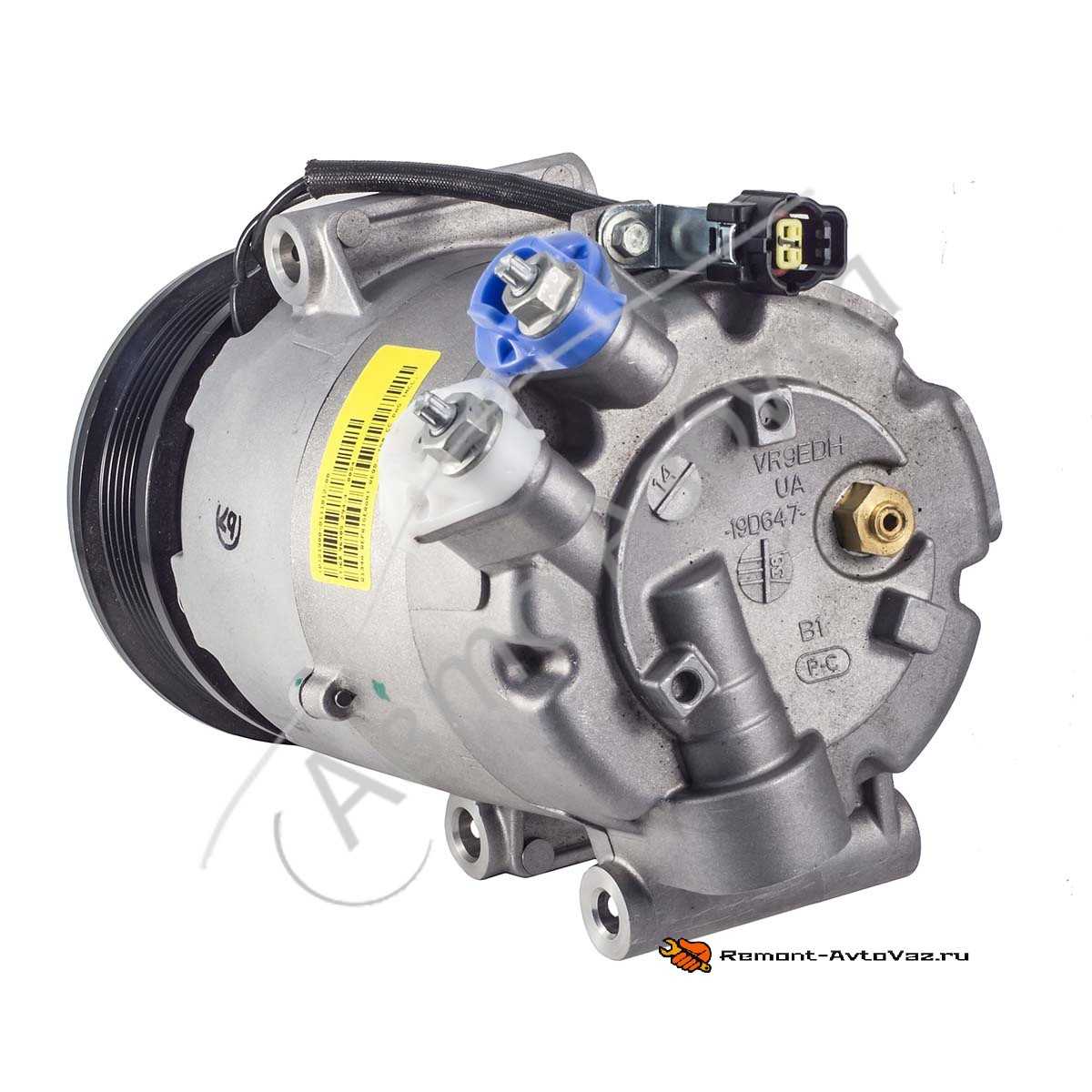 Компрессор кондиционера Лада Гранта установлен на блоке цилиндров двигателя и приводится во вращение поликлиновым ремнем. Он обеспечивает циркуляцию хладагента в системе. Вал компрессора установлен в передней крышке корпуса на подшипниках и уплотнен со стороны шкива привода сальником. Шкив привода компрессора установлен на двухрядном шариковом подшипнике и при работающем двигателе постоянно вращается. При включении кондиционера крутящий момент передается от шкива к валу компрессора через фрикционную муфту с электромагнитным приводом.Пар высокого давления Жидкость высокого давления Пар низкого давления Жидкость низкого давления