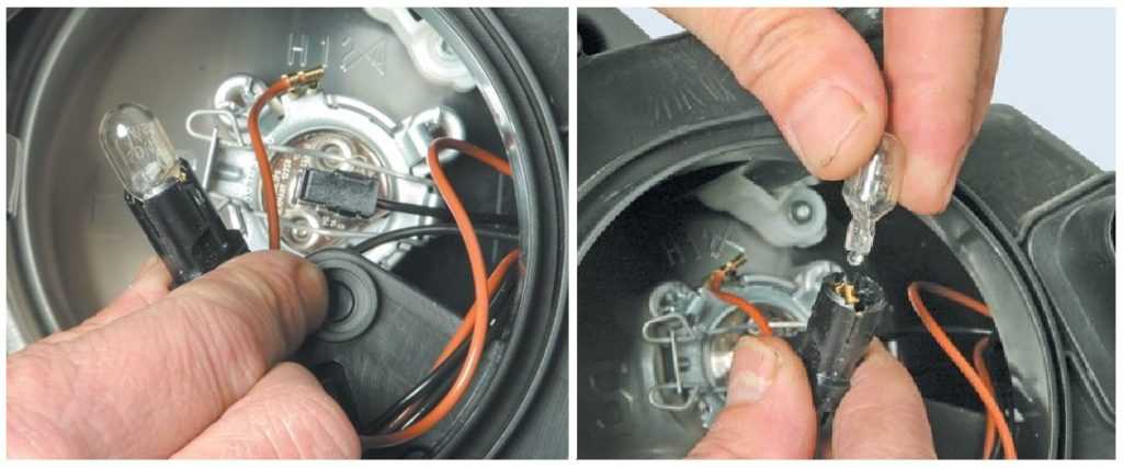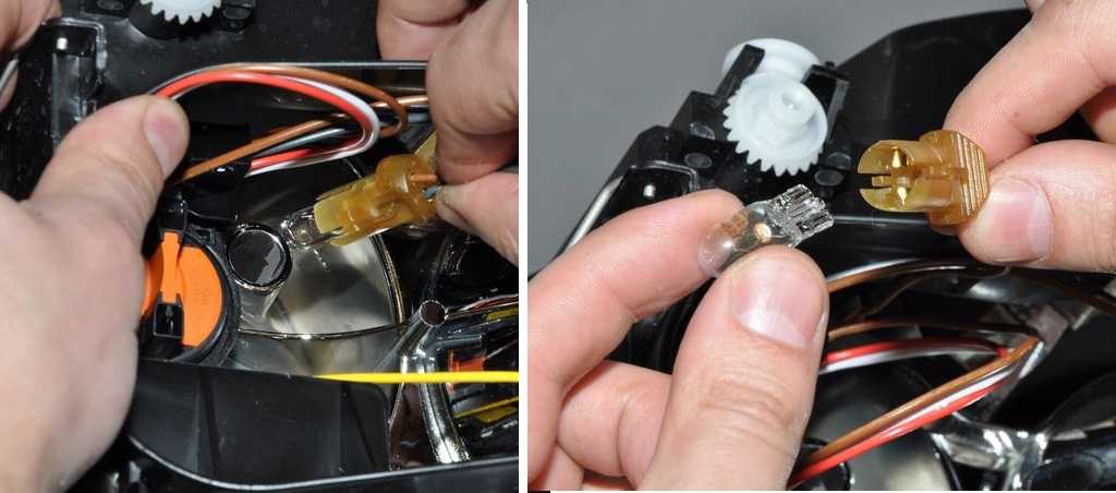 Из патрона извлекаем лампу типа W5W и устанавливаем новую.