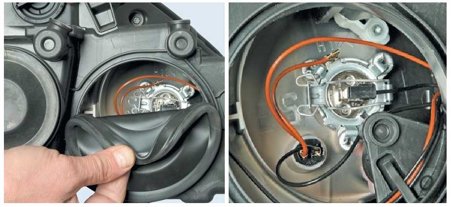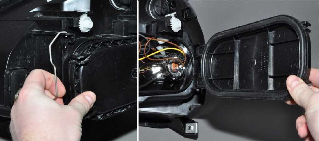 - Левая лампа ближнего света находится ближе к крылу, поэтому нужно снять резиновую крышку крайнюю левую.
