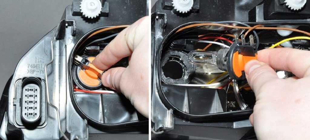 - Теперь можно вынимать галогенку и аккуратно вставлять новую лампу Н7 в корпус блок-фары .