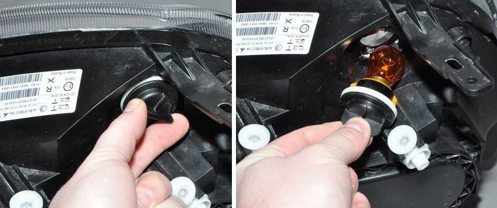 Для замены лампы необходимо повернуть патрон сигнала поворота против часовой стрелки и вынуть его из фары.
