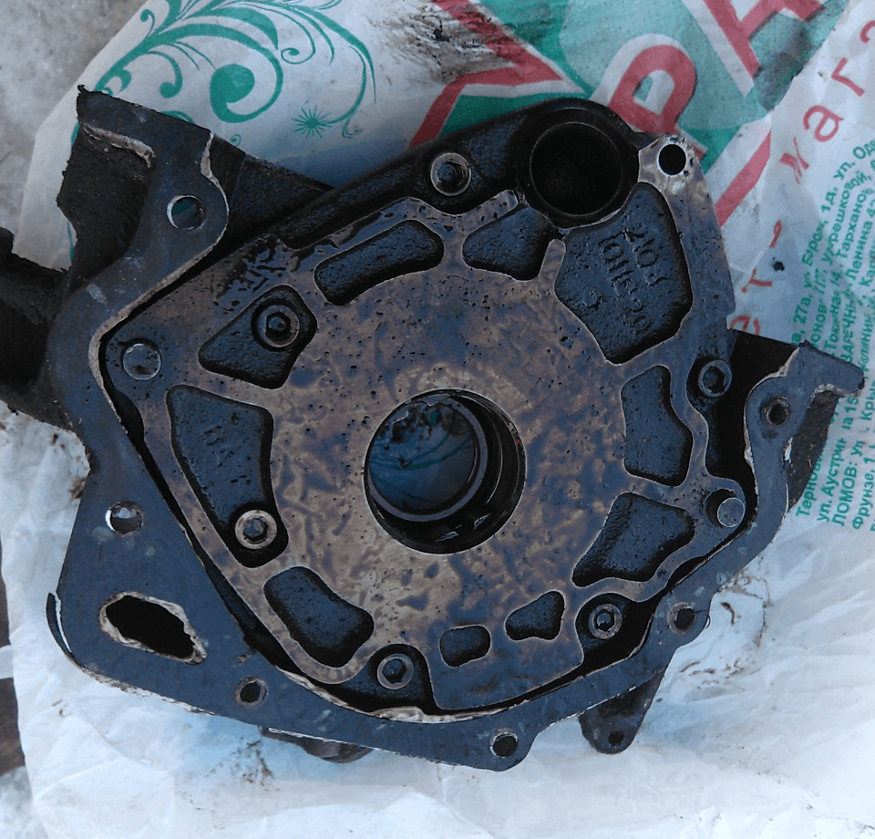 Отвернув все крепёжные элементы, сдвигаем насос от крышки коренного подшипника и демонтируем с двигателя