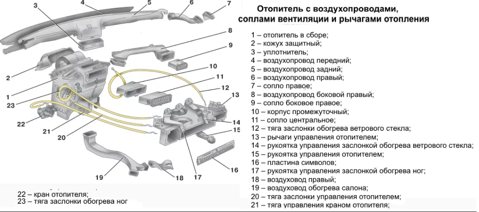 Согласно руководству по ремонту и эксплуатации ВАЗ 2114/15 замену радиатора печки следует производить следующим образом (набор инструментов тот же):