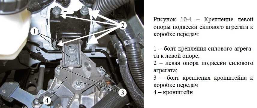 Установить под коробку передач домкрат и немного приподнять ее, разгружая левую опору. Затем необходимо проделать несколько простых манипуляций:
