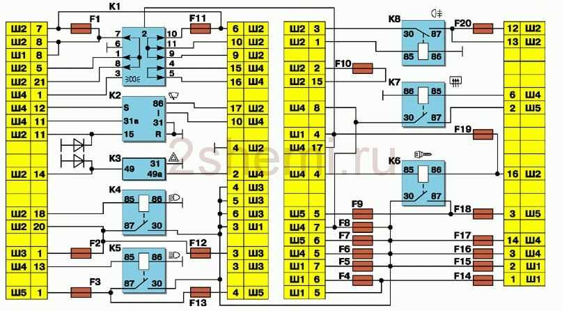 Схема блока предохранителей и реле