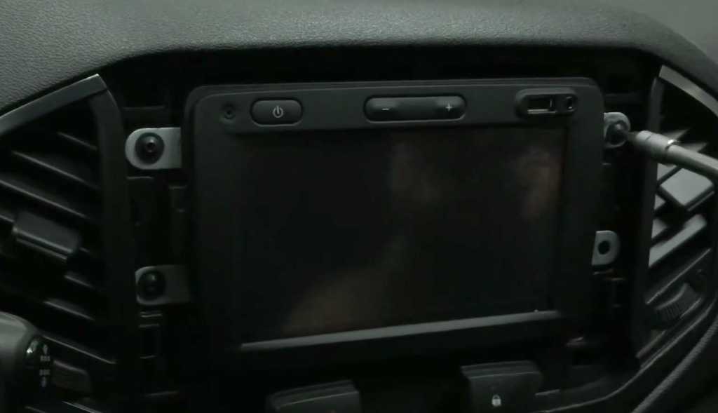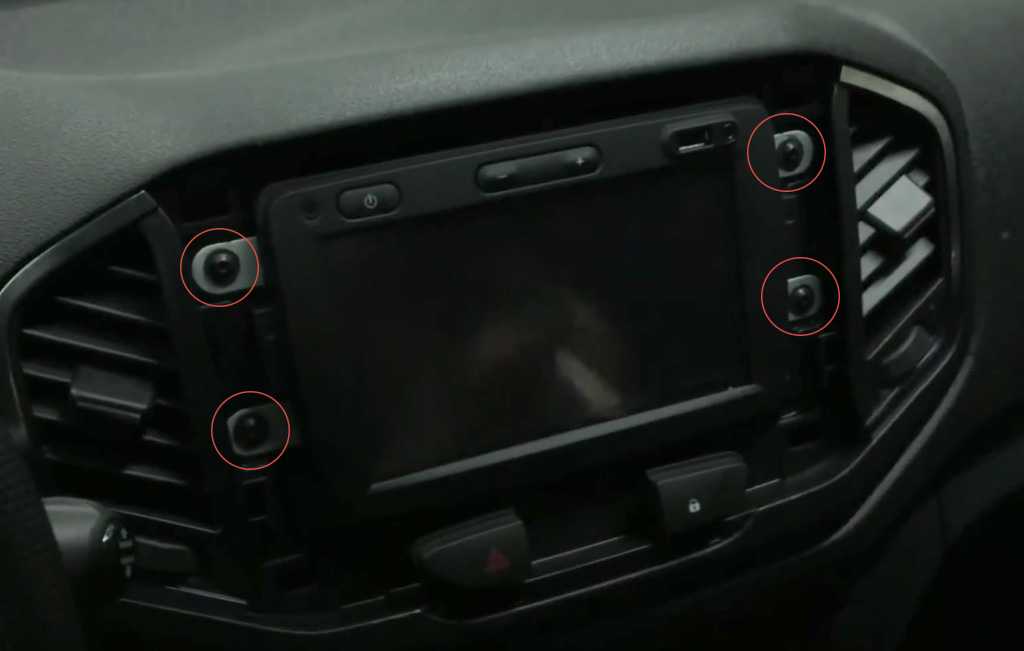 При снятой пластиковой рамке вы увидите, что аудиосистему удерживают на месте четыре винта.