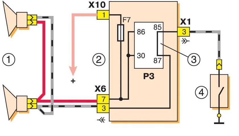 Иногда схема не предусматривает реле, вместо него работает перемычка, замкнутая «напрямую». В случае единственного сигнала 20.3721-01 это оправдано, так как он имеет встроенное реле. В случае если стоят две «улитки», реле желательно поставить для улучшения работы.