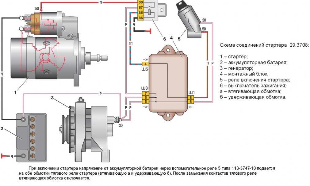 Схема подключения стартера к реле автомобиля