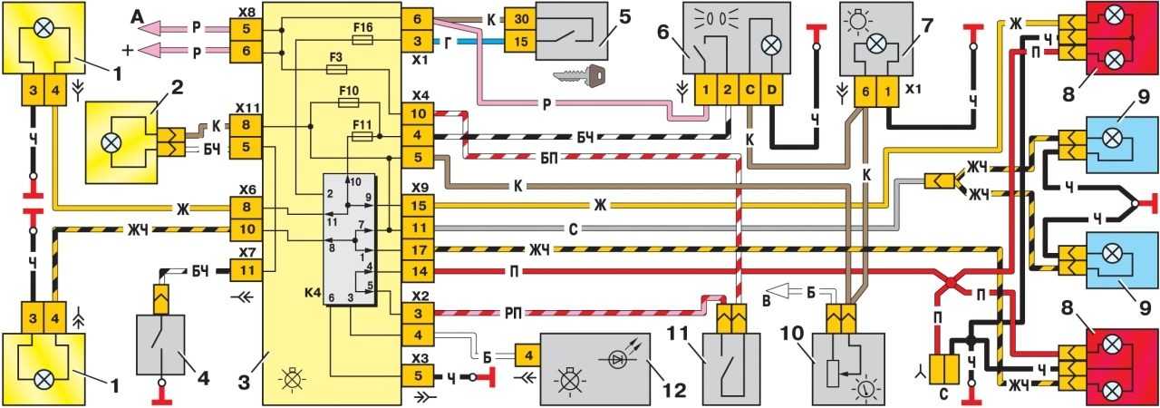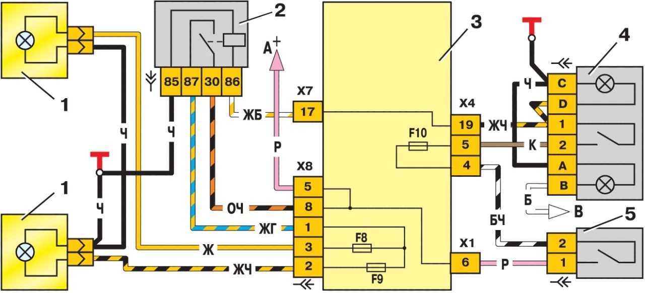 Схема включения фар показана на