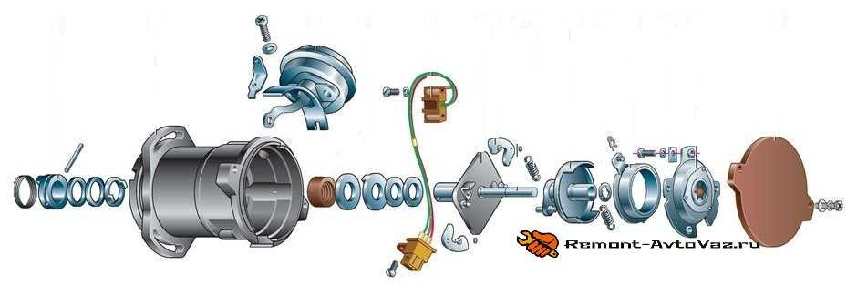 Корректировка осуществляется двумя регуляторами – вакуумным и центробежным, входящими в конструкцию датчика момента образования искры.