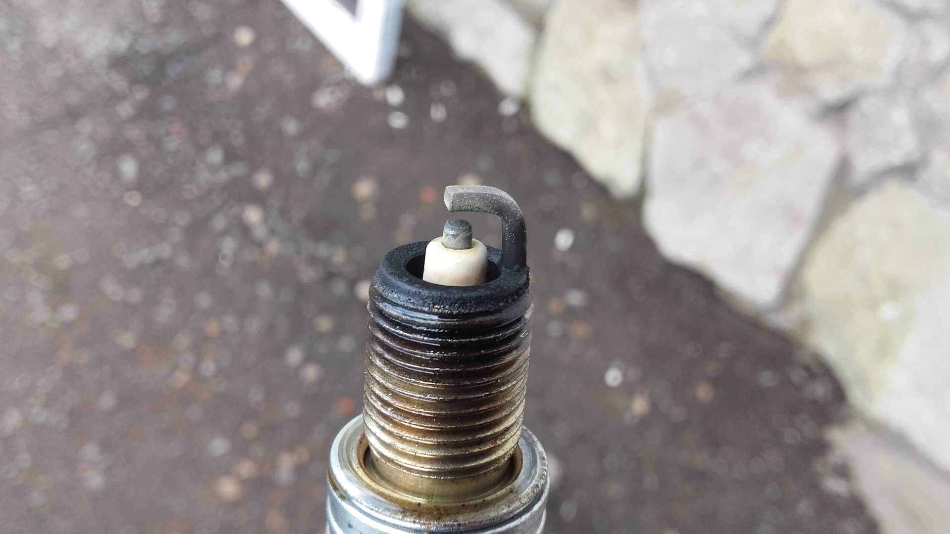 Масляный слой на электродах. Повреждены поршневые кольца, направляющие втулки клапанов или маслосъемных колпачков. Возможно, вы применяли масло или топливо с присадками. В этом случае нужно заменить масло или топливо с присадками и снова проверить состояние свечей.