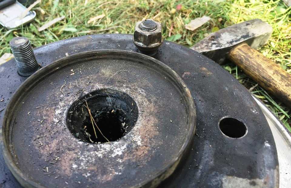 Снять диск можно путем откручивания двух шлифтов, которые служат одновременно и направляющими. Если потребуется, то тут можно использовать молоток, нанося им несильные удары в местах приварки диска к ступице.