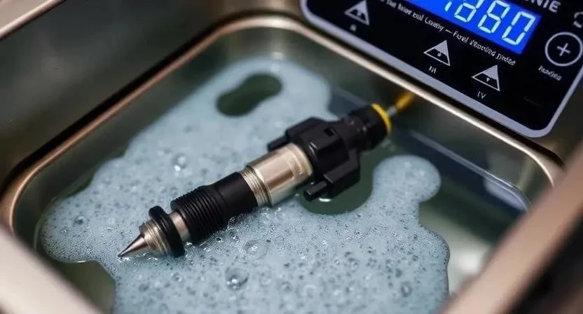 Если промывка на автомобиле не дала результатов, придется снимать форсунки и промывать их в ультразвуковой ванне. Это более трудоемкий процесс, но и более эффективный. Сначала необходимо сбросить давление в топливной системе. Затем отсоедините топливные шланги и электрические разъемы от форсунок. Аккуратно извлеките форсунки из топливной рампы. Установите форсунки в ультразвуковую ванну, заполненную специальной очищающей жидкостью. Включите ванну и дайте форсункам промыться в течение 20-30 минут. После промывки продуйте форсунки сжатым воздухом, чтобы удалить остатки жидкости. Перед установкой форсунок проверьте их на герметичность.