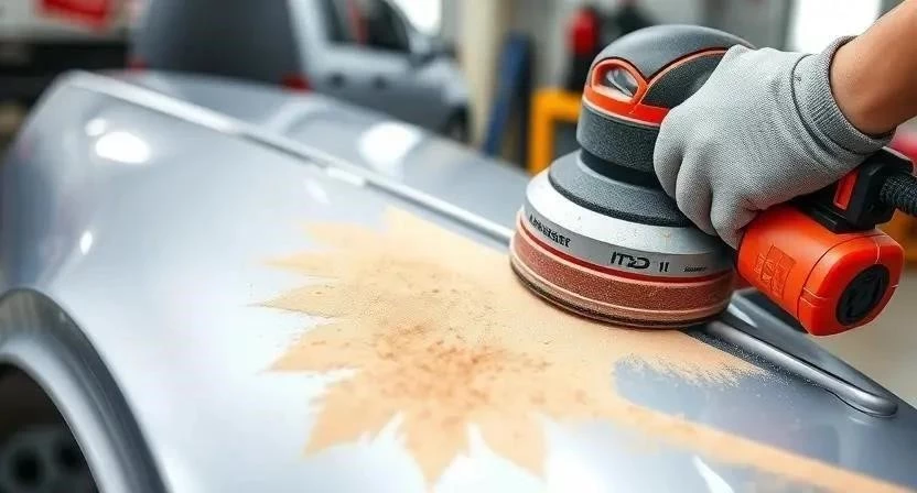 - Зачистите пораженный участок до голого металла. Используйте шлифмашинку и наждачную бумагу разной зернистости.